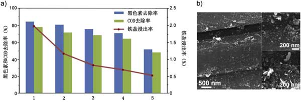 图3:在优化测试条件下,活性炭催化剂在Fenton样工艺中处理黑色素废水五个循环的可重复使用性评估。