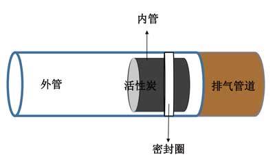 模拟的测试环境包含内部和外部两部分的试管进行吸附。外管的长度为50cm,直径为3.8cm。该管的功能是将排气消声器连接至气体分析仪,而内管则用作活性炭的储存器。改变内管的长度,以确定活性炭负载百分比对降低废气浓度的影响。直径分别为3cm,4cm和5cm。管子之间有一个密封,以防止废气泄漏。管的结构在图1中进行了描述。