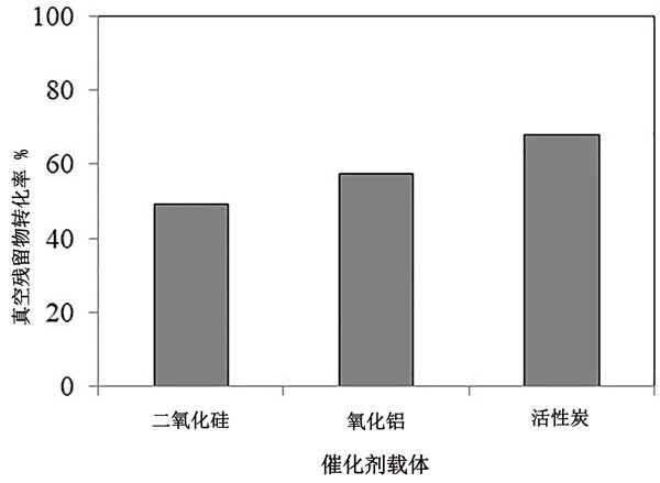 用活性炭,二氧化硅和中孔氧化铝载体制备加氢处理催化剂,并在410°C的温度和10MPa的压力下进行真空残留物加氢处理反应的测试。对比性能显示,尽管二氧化硅负载的催化剂具有非常高的表面积,但由于其较低的孔径,它在残渣提质过程中极易形成焦炭。反过来,这导致转化率低和液体产品收率低。与二氧化硅负载的催化剂相比,活性炭负载的催化剂表现出更高的转化率。原因之一是活性炭的孔径分布比二氧化硅高。活性炭催化剂的有效性可归因于其较大的孔径,较高的孔体积以及活性金属的较好分散性。这些对于残余物加氢处理催化剂是有利的性质。