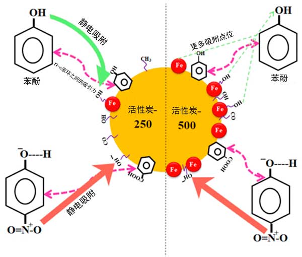 图1:通过氢键和π-π相互作用将酚类吸附到活性炭上的机理。