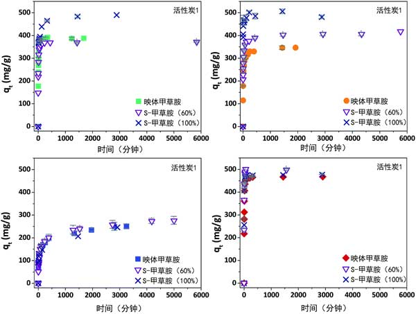 彩运cy888 图3:活性炭在25°C时映体,S-甲草胺(60%)和S-甲草胺(100%)吸附的演变。