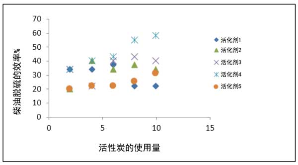 图1:不同活化剂活化的活性炭对柴油脱硫。