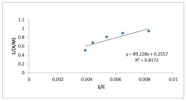 图2:Langmuir等温线柴油通过活性炭去除硫。