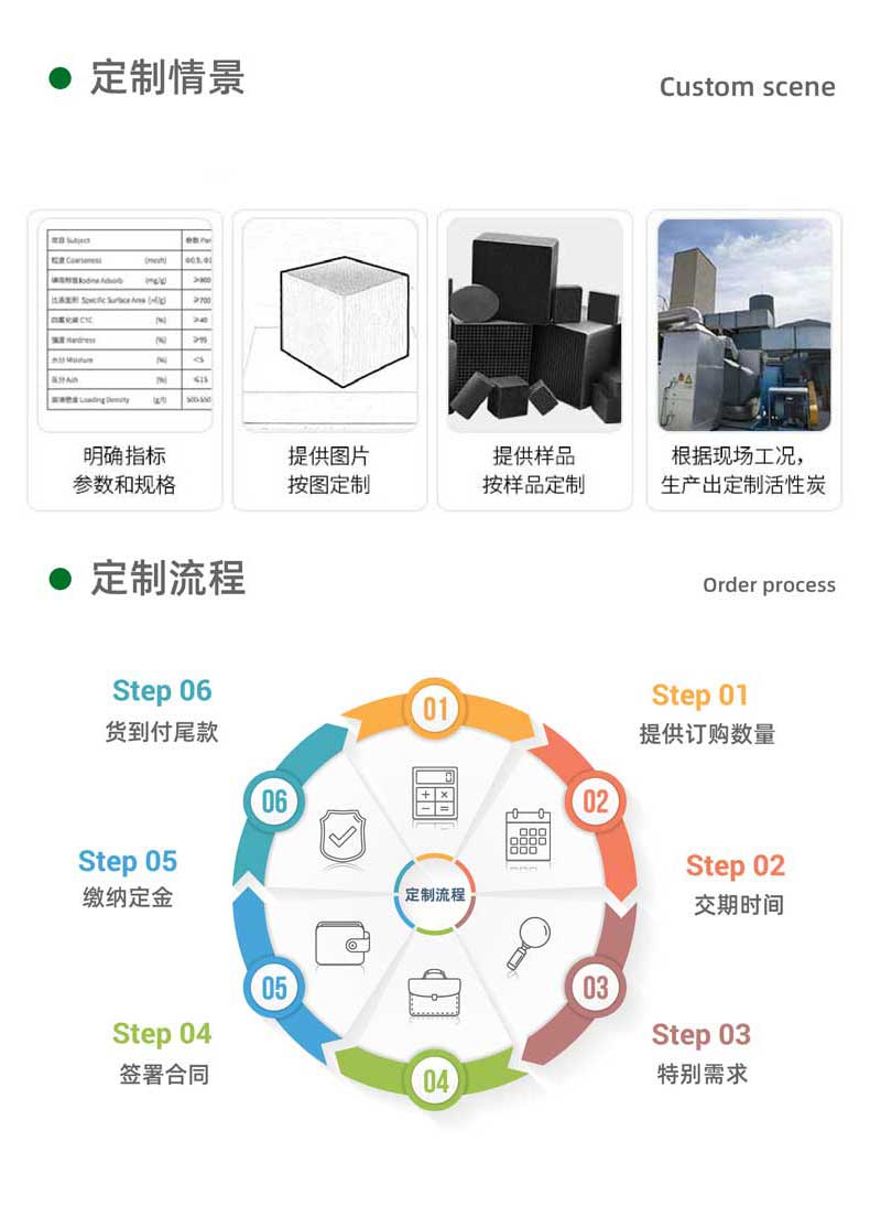 我厂出厂的蜂窝活性炭主要原料是采用,高级煤质活性炭粉、高碘值椰壳活性炭粉、超强脱色木质活性炭粉,目前国内市场大多数都是高级煤质活性炭粉制造成蜂窝形状的活性炭,所以被人们称为蜂窝状活性炭。